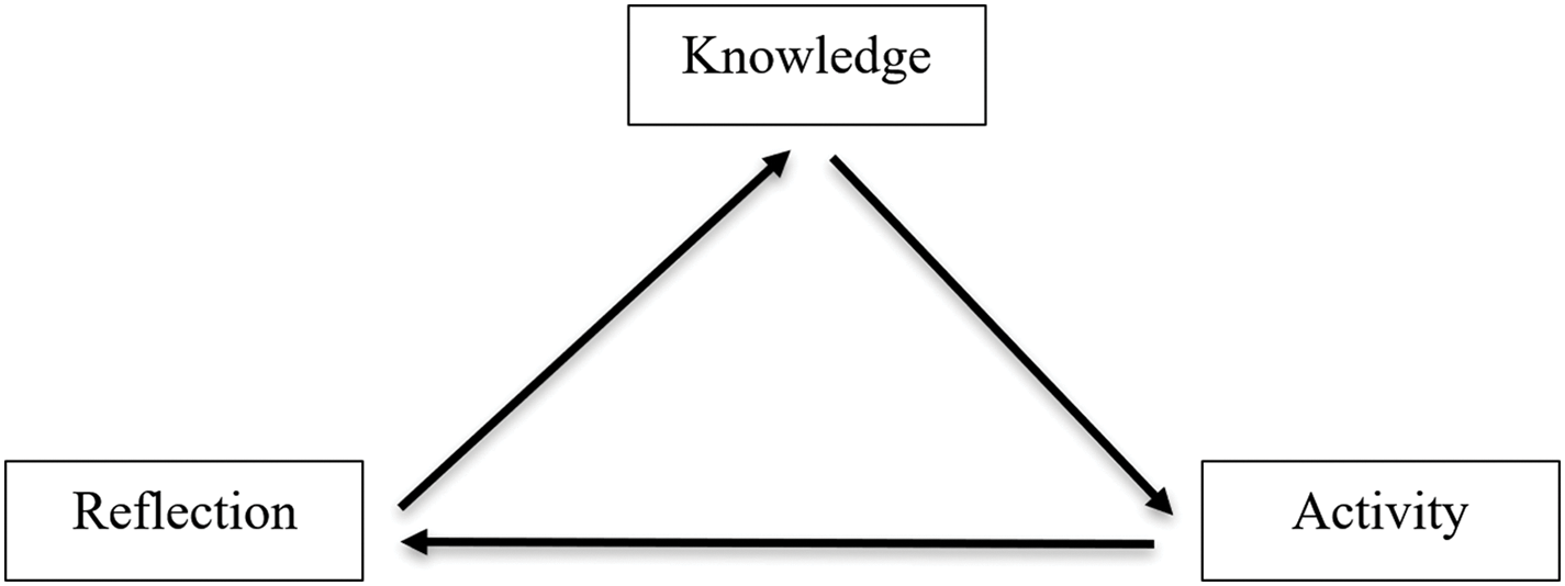 Fig. 1 shows the Framework for Training Effectiveness, guided by components of experiential learning theory through 1.) Knowledge, 2.) Activity, and 3.) Reflection.