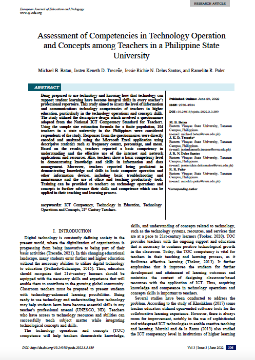 Assessment of Competencies in Technology Operation and Concepts among Teachers in a Philippine State University