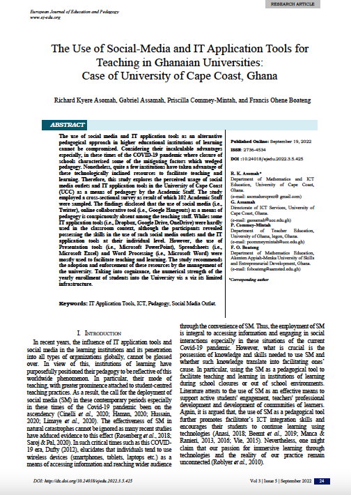 The Use of Social-Media and IT Application Tools for Teaching in Ghanaian Universities: Case of University of Cape Coast, Ghana