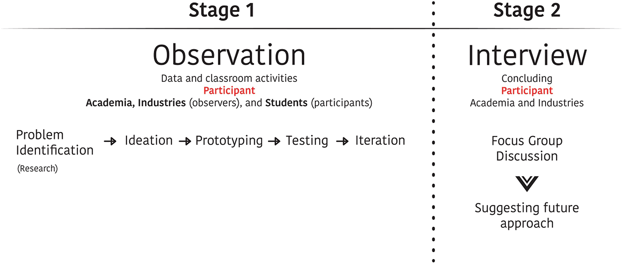 Furthermore, it is essential to note that this research is conducted in collaboration with industry partners. The involvement of industry professionals provides a unique opportunity to bridge the gap between academic learning and real-world applications. As part of the methodology, the observations made in the classroom will be documented and analysed, and the results will be presented to the industry partners. Following this, interviews will be conducted with industry experts to gain additional insights and perspectives. Data triangulation through industry collaboration will provide a comprehensive understanding of the diploma students’ ability to apply design thinking principles professionally.