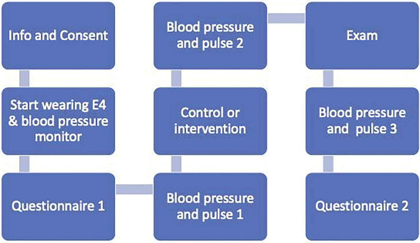 After the exam, blood pressure and pulse were taken again. Fig. 1 gives an overview of the experimental procedure.