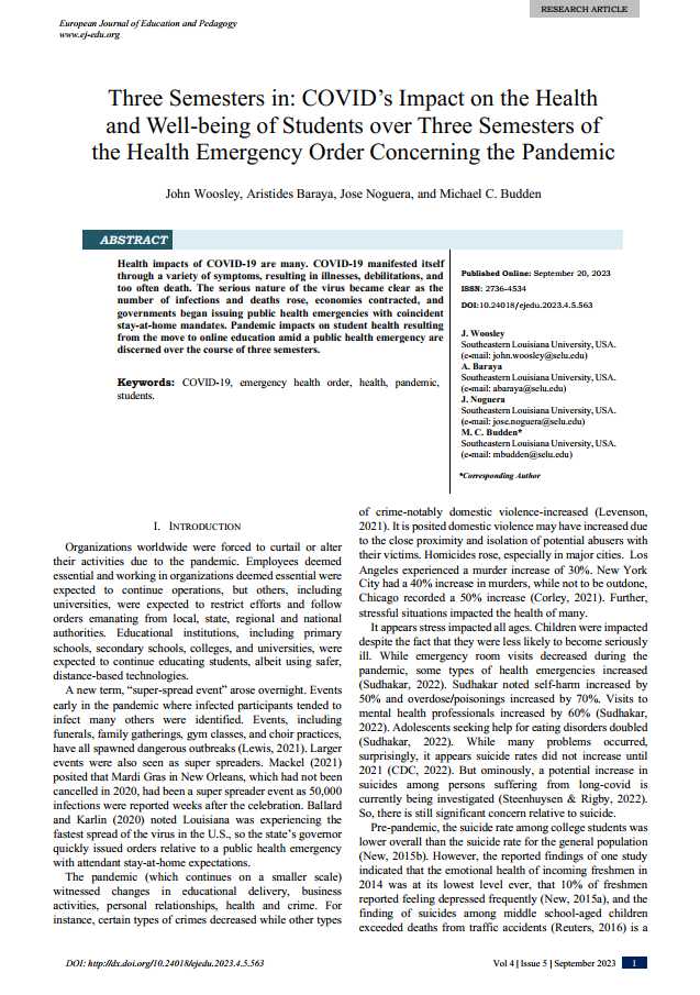 Three Semesters in: COVID’s Impact on the Health and Well-being of Students over Three Semesters of the Health Emergency Order Concerning the Pandemic