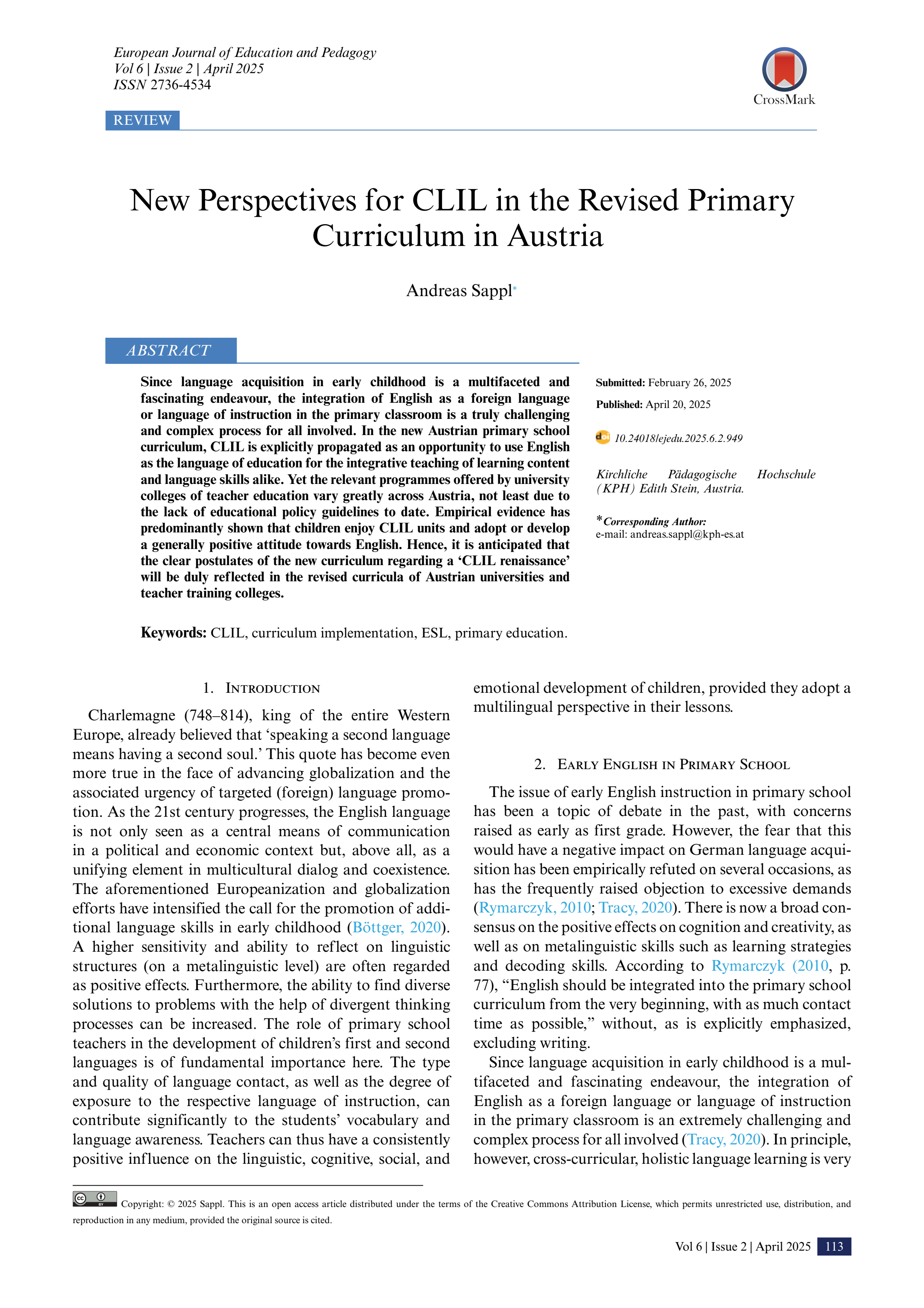 New Perspectives for CLIL in the Revised Primary Curriculum in Austria