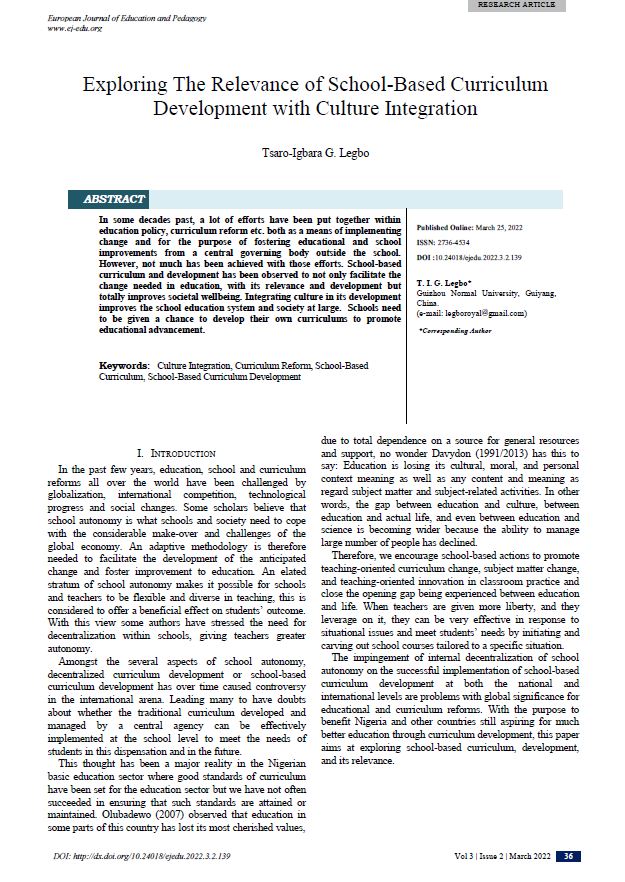 Exploring The Relevance of School-Based Curriculum Development with Culture Integration