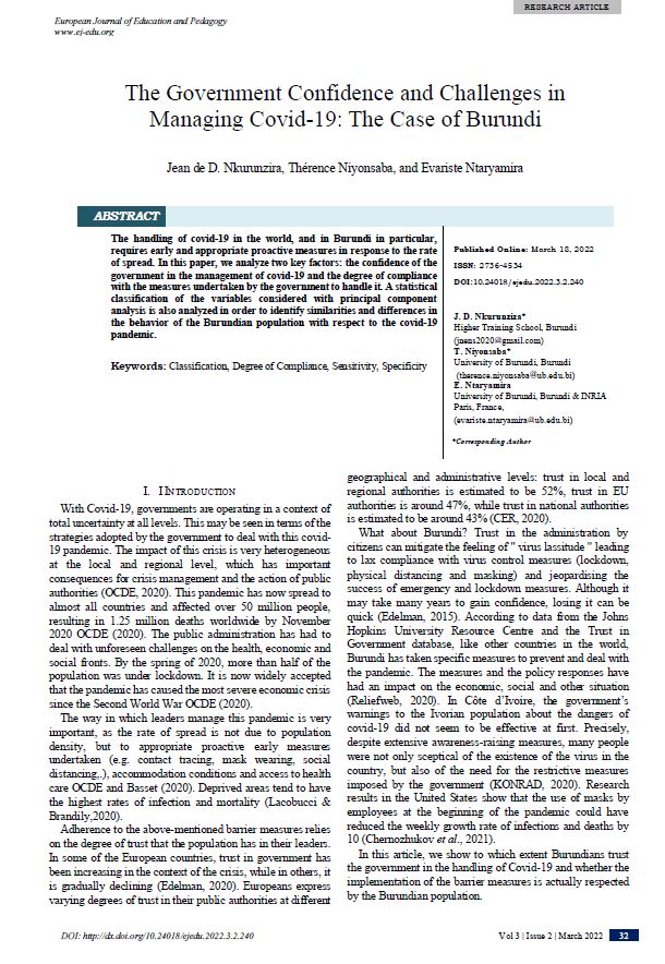 The Government Confidence and Challenges in Managing Covid-19: The Case of Burundi