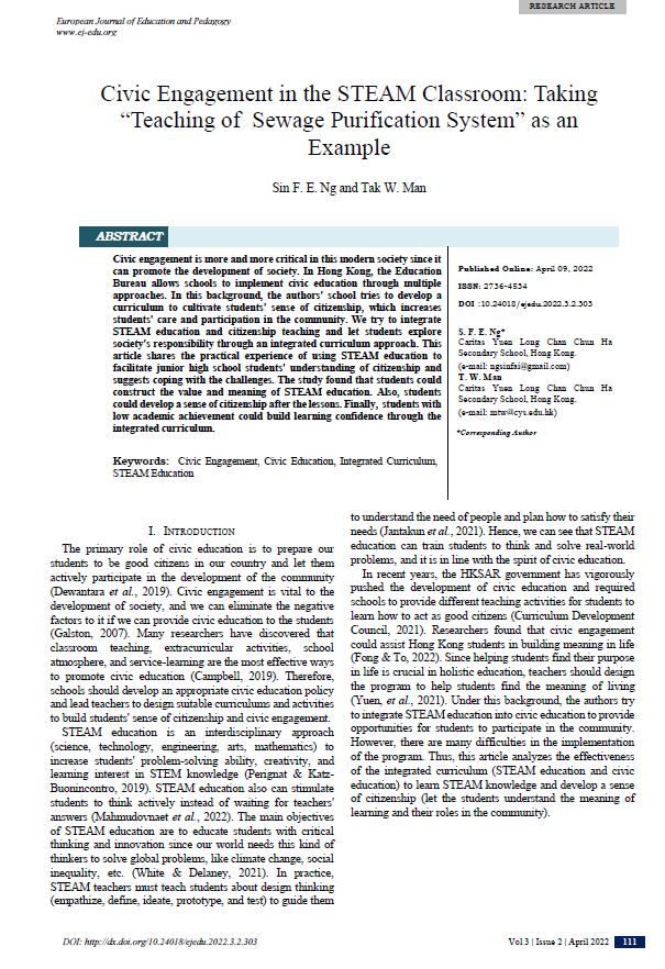 Civic Engagement in the STEAM Classroom: Taking “Teaching of Sewage Purification System” as an Example