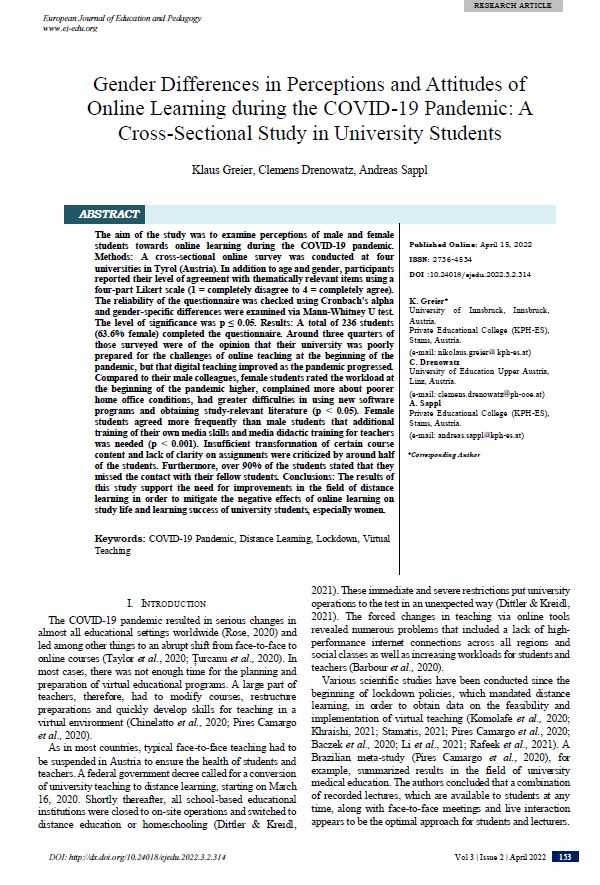 Gender Differences in Perceptions and Attitudes of Online Learning during the COVID-19 Pandemic: A Cross-Sectional Study in University Students