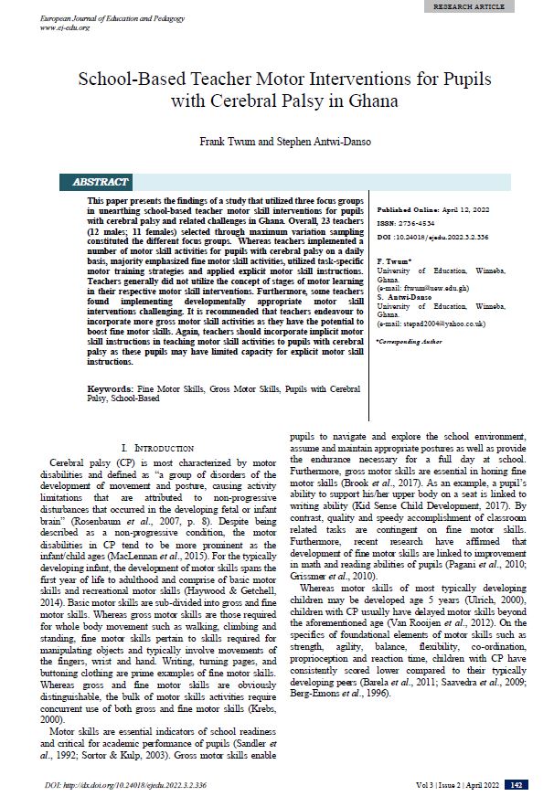 School-Based Teacher Motor Interventions for Pupils with Cerebral Palsy in Ghana