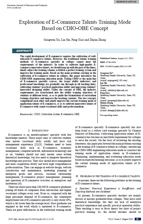 Exploration of E-Commerce Talents Training Mode Based on CDIO-OBE Concept