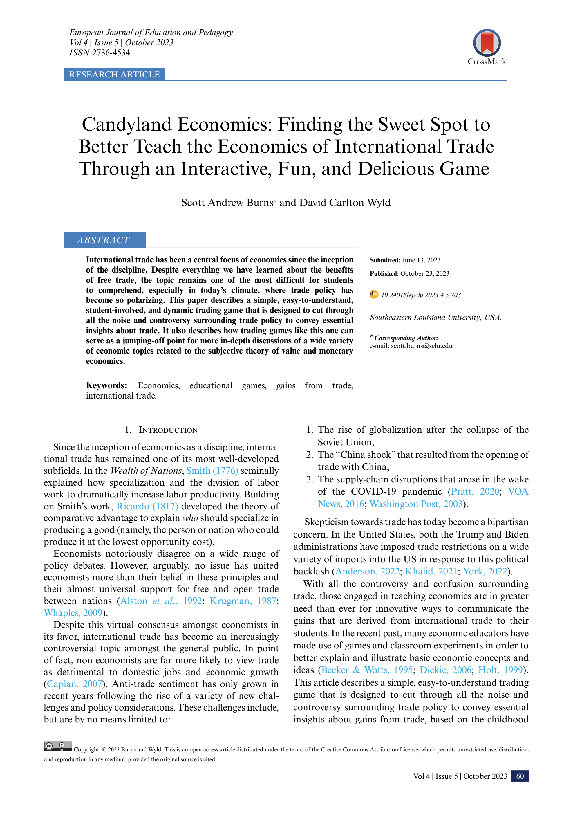 Candyland Economics: Finding the Sweet Spot to Better Teach the Economics of International Trade Through an Interactive, Fun, and Delicious Game