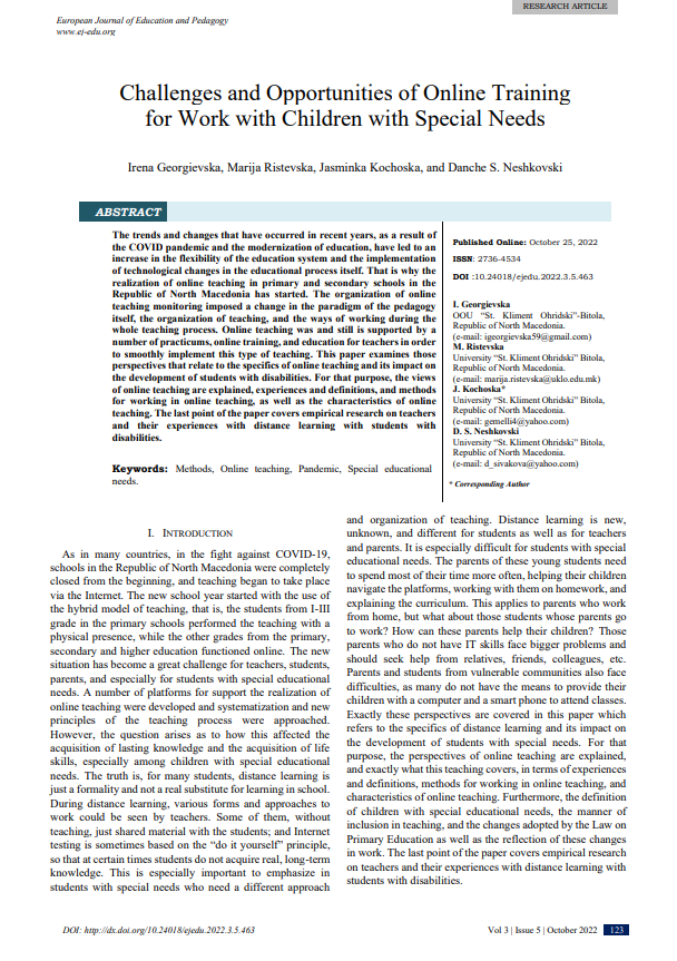 Challenges and Opportunities of Online Training for Work with Children with Special Needs