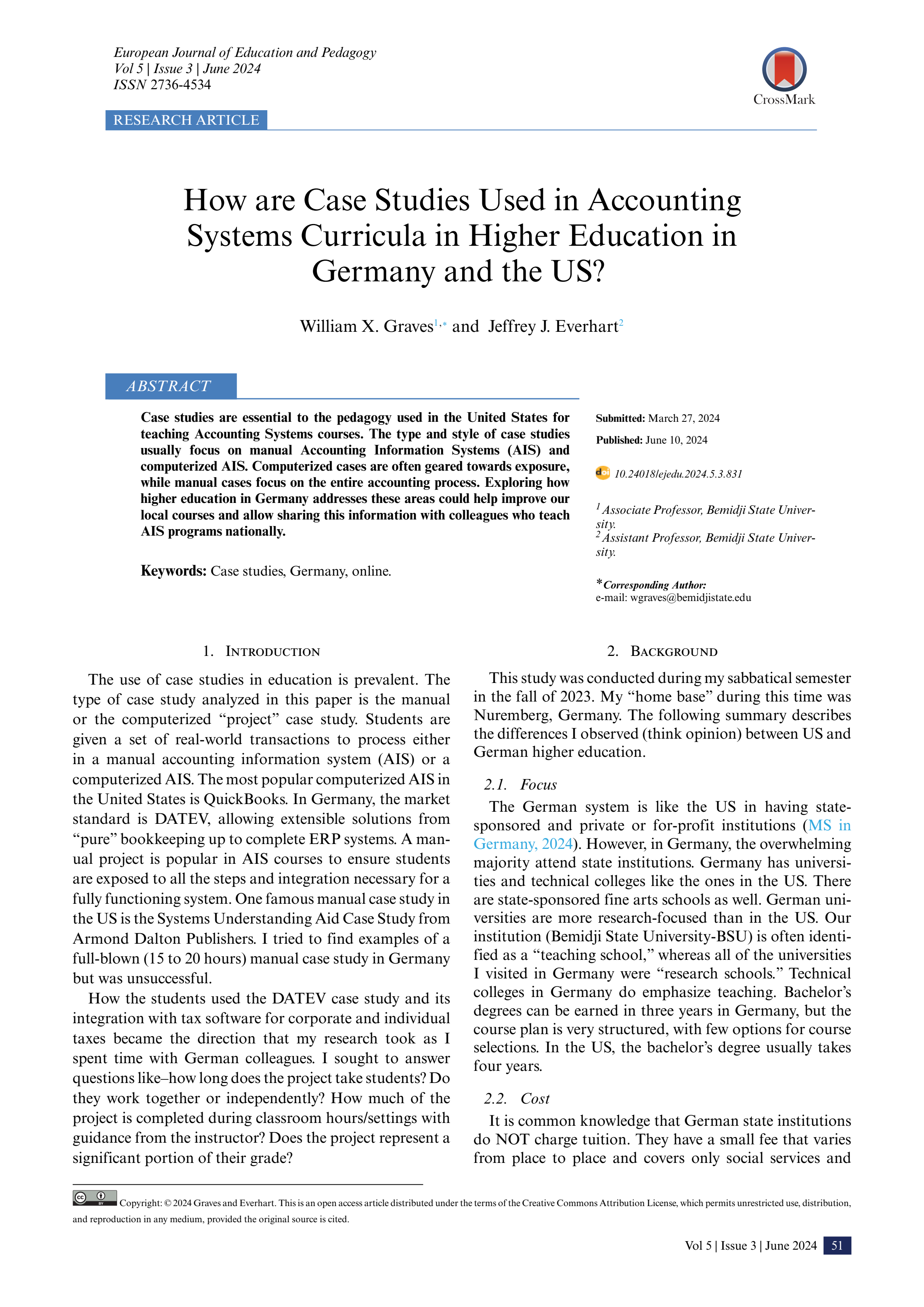 How are Case Studies Used in Accounting Systems Curricula in Higher Education in Germany and the US?