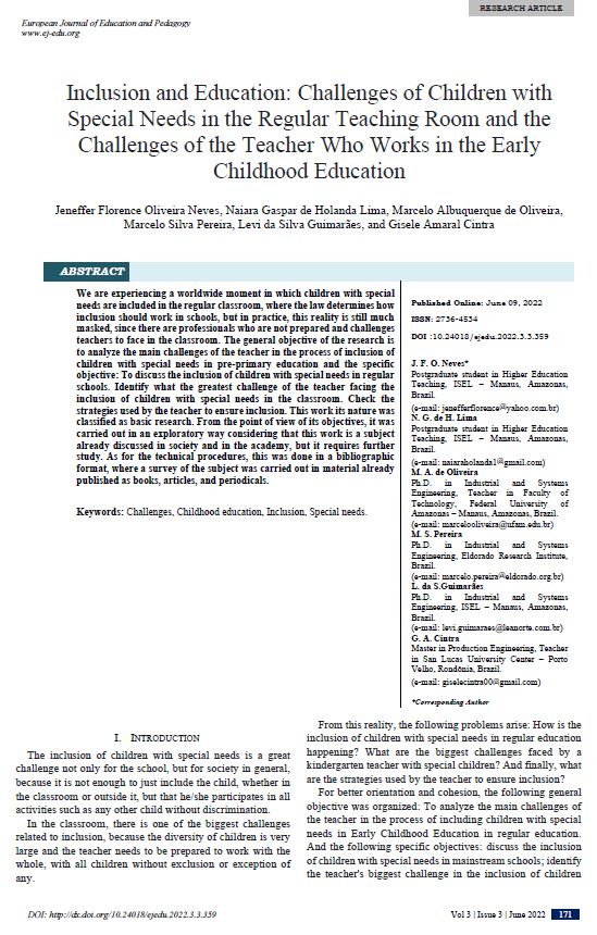 Inclusion and Education: Challenges of Children with Special Needs in the Regular Teaching Room and the Challenges of the Teacher Who Works in the Early Childhood Education