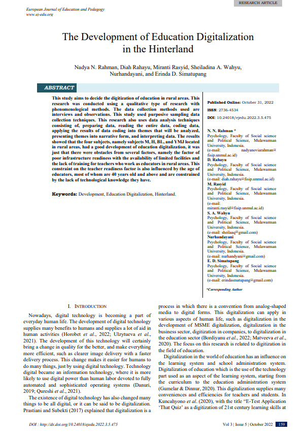 The Development of Education Digitalization in the Hinterland