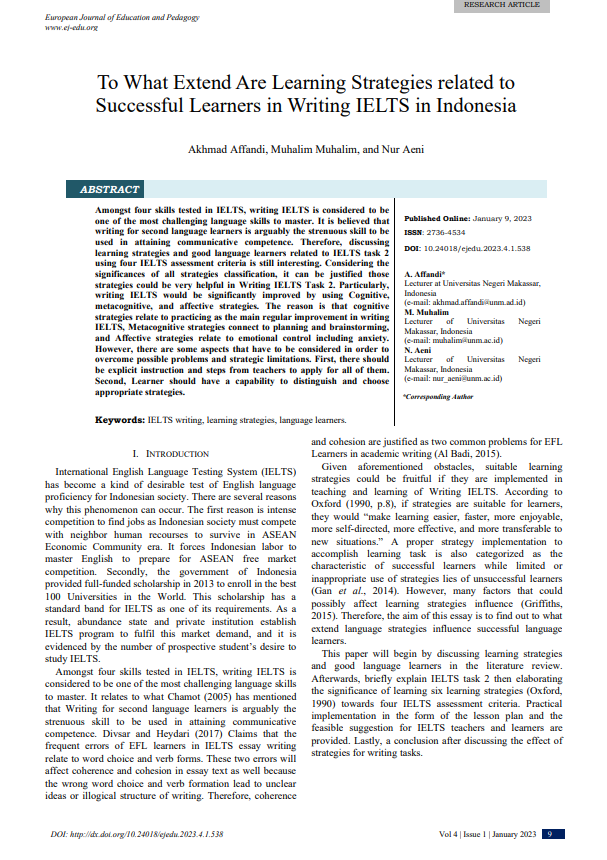To What Extend Are Learning Strategies related to Successful Learners in Writing IELTS in Indonesia